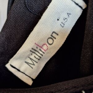 Millibon Dress Elastic Waist Black Geometric SzM Long Sleeves Cross Back Lined