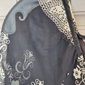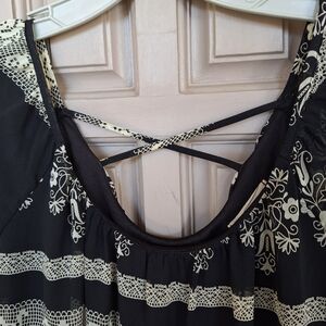 Millibon Dress Elastic Waist Blk/Creme Geometric SzM Long Sleeves Cross Back Lined Light Weight Semi Sheer