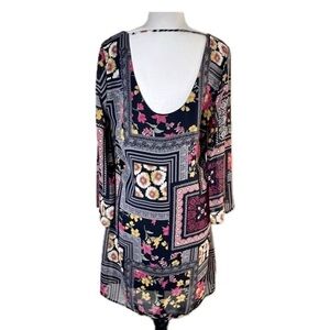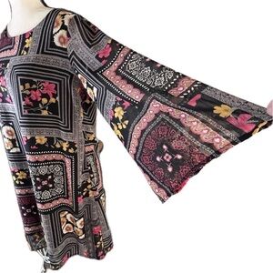Millibon USA Boho All Over Patterned Dress With Sheer Flared Sleeves Size Medium.