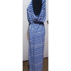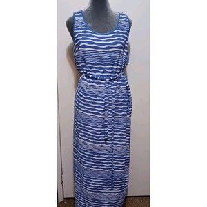 Millie Gabrielle Maxi Dress Blue White Spaghetti Strap Summer Beachy Size L