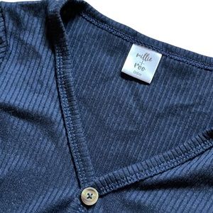 EUC! Size 0-6 months. Worn and washed only once. Hung to dry. Clean and clear detergent. Pet/smoke free home. No defects. Functional buttons and pockets. Soft ribbed material. Navy blue color