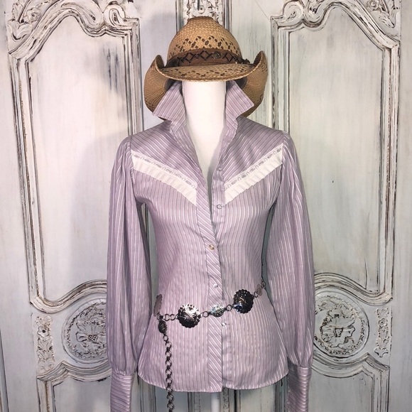 Millie Sweet VINTAGE Lavender Stripe Western Riding Button Down Blouse Size 5/6
