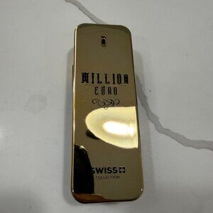 Million Euro by Swiss Collection SC EDT Men 100ml 3.38 fl oz Inspired by Paco Rabanne 1 Million Million Euro by Swiss Collection SC EDT 100ml is a bold, luxurious fragrance for men, inspired by Paco Rabanne 1 Million, blending citrus, spices, and rich woods for a confident, lasting impression. Rich woods and amber provide depth, elegance, and a masculine finish that lasts throughout the day. Long-lasting formulation ensures the fragrance stays vibrant and noticeable from morning to night. Versatile: Perfect for day-to-day use, casual outings, evening events, and formal occasions, making it highly adaptable. Bright, fresh citrus (grapefruit and blood mandarin) with a crisp minty twist. Note: Please see photos for best description and feel free to reach out if you have any questions. We offer wholesale for fragrances and other items. Reach out to our social pages for further information. Size: Mens 100 ml Condition: New With Box