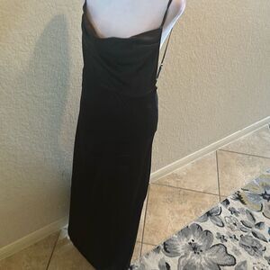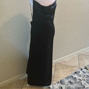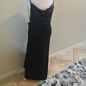 Million Colors Size M Open Back Cowl Neck Slip Dress Black Satin Formal Evening