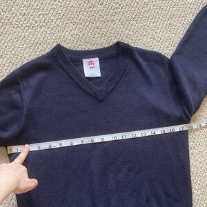 Mills Uniform Unisex V-Neck Navy Blue Pullover Sweater Preppy Children’s Large