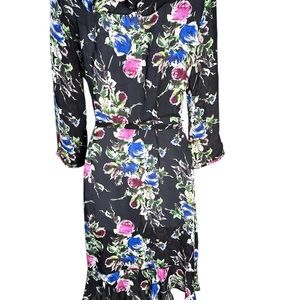 Milly 100% Silk Floral Wrap Dress - Black with Pink and Blue Accents