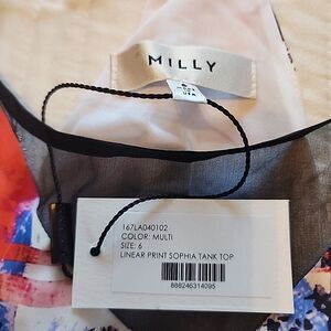 Milly 100% Silk Linear Print Sophia Tank Top Multi Color Size 6 Cami USA NWT