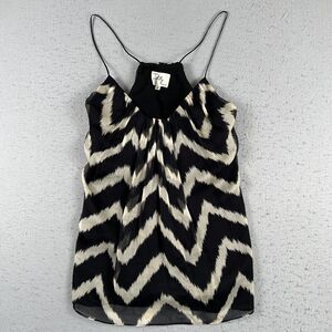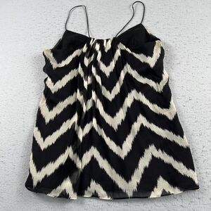 Milly 100% Silk Spaghetti Strap Black White Chevron Tank Top Women’s Size 6