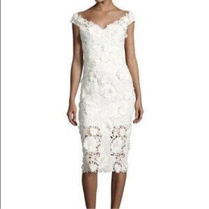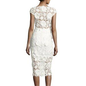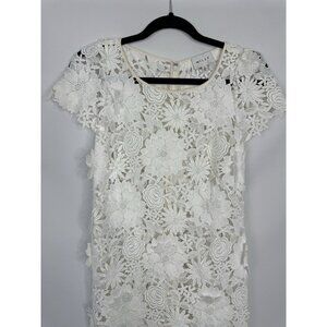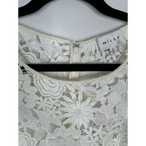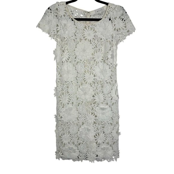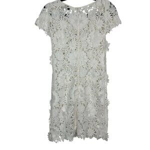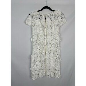 Milly 3D White Floral Embroidered Short Sleeve Cocktail Mini Dress