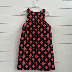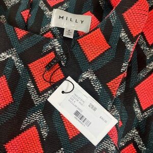 This Milly dress showcases a playful A-line silhouette in a vibrant pink color scheme. The sleeveless design features a halter neckline, perfect for a casual night out. Its lightweight fabric and lively geometric pattern add a touch of sophistication and fun.