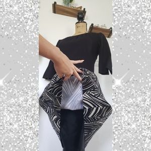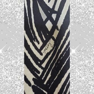 Very pretty Milly of New York dress. Has belt loops that can either be used or clipped off. Black and ivory. No belt is included. It has pockets with a silky lining underneath and slit details in the back of the arms. Zipper closure in back. Size 8. Slight piling underneath armpits, nothing significant, no damage, fading etc. All in all it's in great condition.