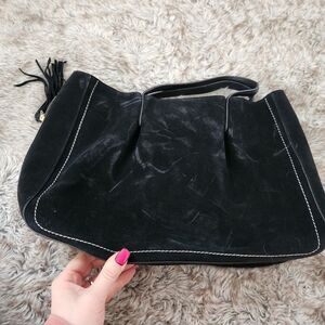 Excellent used condition. Detachable crossbody strap missing. Inner liner is dusty and suede has some markings, as shown in photos