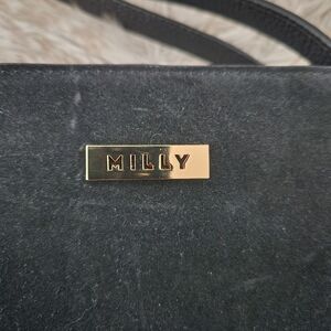 Milly Astor Ruffle Suede Pinched Slip Pocket Handbag Black