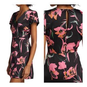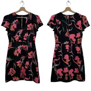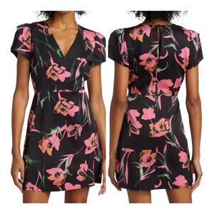 Milly Atalie Floral Print Pegged V-Neck Short Sleeve Tailored Mini Dress Size 4