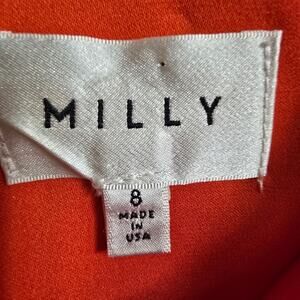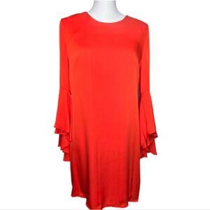 Milly Bell Sleeve Silk Blend Stretch Crepe Midi Shift Dress Flame Orange Size 8