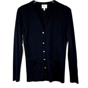 Milly Black Angora Blend Knit Cardigan Sweater Snap Button Crystal Flower SMALL