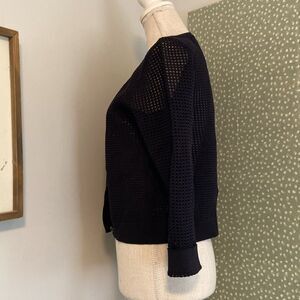 Milly Black Crochet Knit Cropped 3/4 Sleeve Lightweight Cardigan