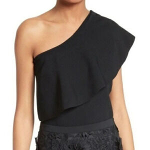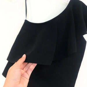 Milly Black One Shoulder Ruffle Tank Top SP