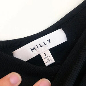 This gorgeous black ruffled tank from Milly is perfect for a special occasion! It features a single shoulder and is made of a black, stretchy material. Preloved but in excellent condition with no signs of wear!