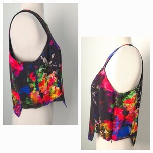 Milly Black, Pink & Blue Floral Side Cut-Out Sleeveless Crop Top