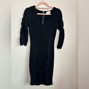 Milly Black Shirred Ribbed V-Neck Bodycon Knee Length Dress S