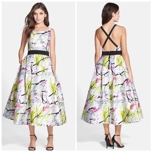 Milly Black and White Halter Sheath Midi Dress