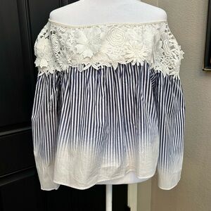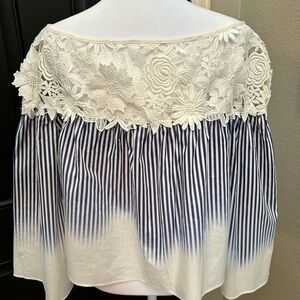 Milly Blue And White Striped Ombré Lace Off The Shoulder Coastal Swing Top Sz 6