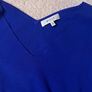 Milly Blue Ribbed Knit Blouse Size L