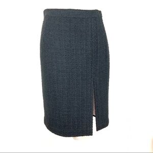 Milly Boucle Tweed Front Slit Virgin Wool Blend Pencil Skirt In Black Size 4
