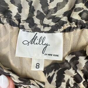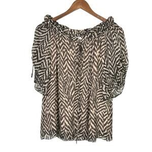 Milly Brown Tan Zebra Animal Print 100% Silk Short Sleeve Blouse