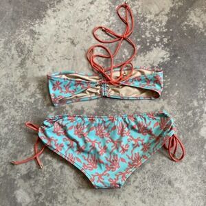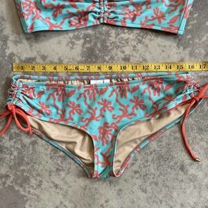 Milly Cabana 2 Piece Bikini Swimwear Coral Print Size m Top, L bottom.