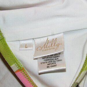 Milly Cabana Green Pink Mod Floral Retro Bandeau Halter Convertible Bikini Top sz Large. O ring at center. Halter strap is removable.