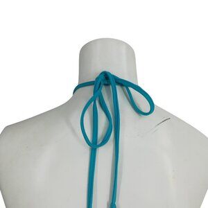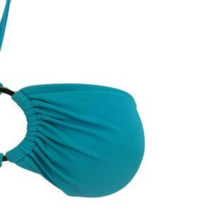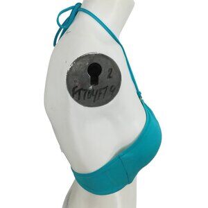 Milly Cabana Halter Bandeau Bikini Top Size 8 Padded Blue Silver Swimsuit