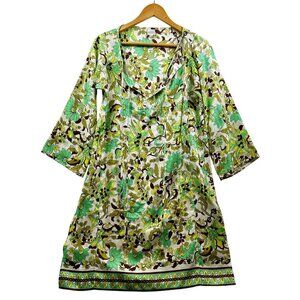Milly Cabana Y2K Resort Tunic Dress Signed Mod Floral Print Gold Tassel Detail M