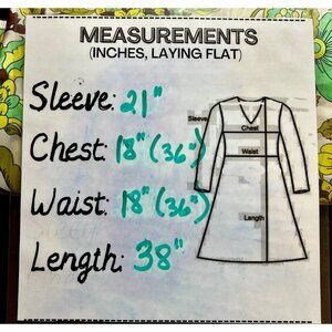 Size: Medium Measurements: Chest 36", Waist 36", Sleeve 21" (3/4-length), Length 38"