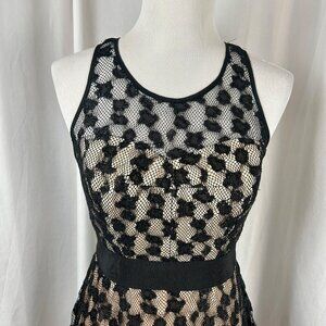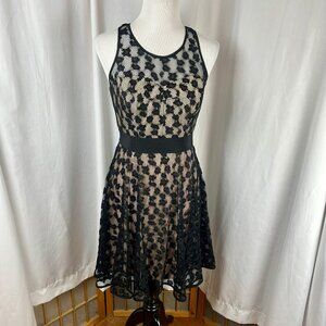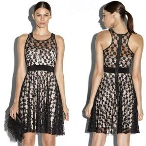 Milly Cheetah Lorex Lace Dress Women 4 Black Nude Lace Fit Flare Event Party LBD