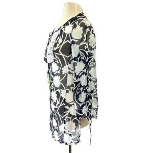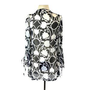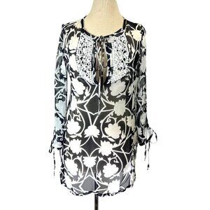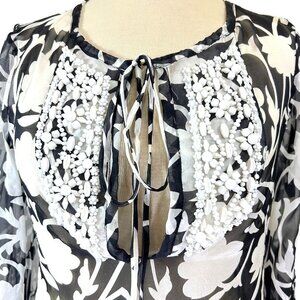 Milly Coverup Womens Size 6 Blk/White Silk Tunic Beaded Boho Palm Print Beach