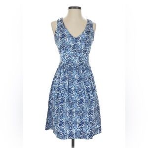 Milly Design Nation Coastal Mosaic Print Blue White Sleeveless Mini Dress Sz 2