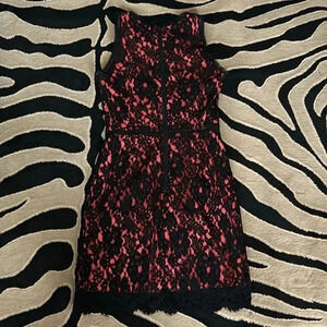 Milly knee length dress. Black lace overlay on coral silk-like lining. Full zip. Great condition, beautiful details. Pictures don’t do it justice!
