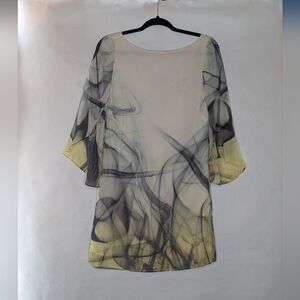 Milly Dress Sz 4 Smoke Print Silk Knee Length Flutter Sleeve Watercolor Art