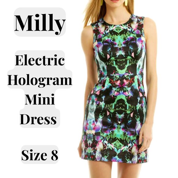 Milly Electric Hologram Multicolor Mini Dress - Size 8