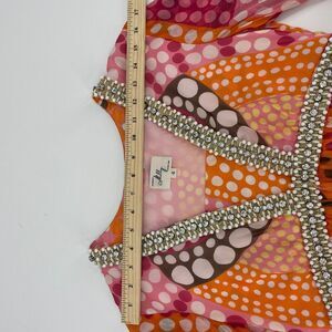 Milly Empire Waist Mini Dress Women's 4 Multicolor Polka Dot Embellished Silk.