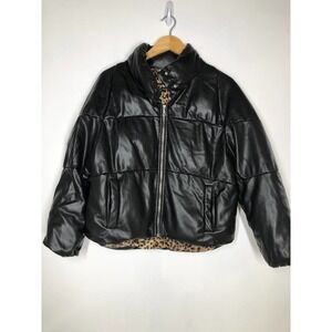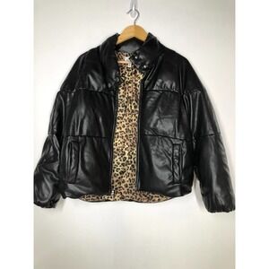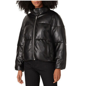 A cropped cut and quilted faux leather create a cool play on proportions via this standout puffer by Milly
