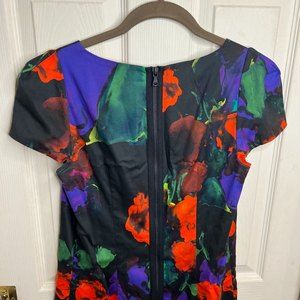 Milly Floral Abstract Colorful Black Mini Dress Size 4