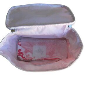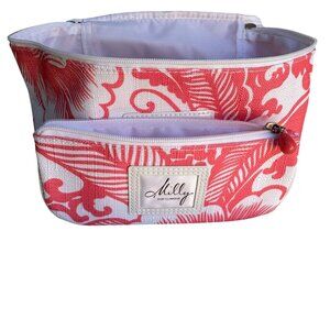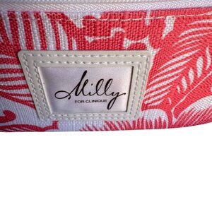 Milly For Clinique Red & White Floral Cosmetic Bag With Zipper Closure