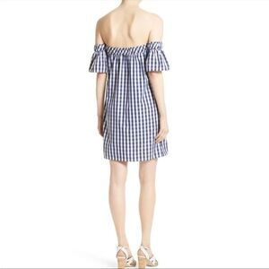 Milly / Gingham navy white Off the Shoulder Shift mini Dress Size M