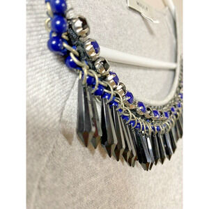 Milly Gray Short Sleeve Knit Top Embellished Black Blue Beads Size P(0-2)
