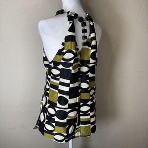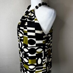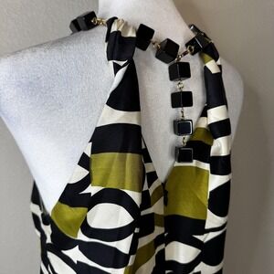Milly Halter Top Womens 8 Black Green White Geometric Silk Beaded Necklace Detail