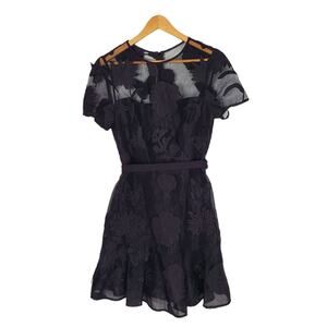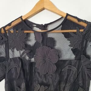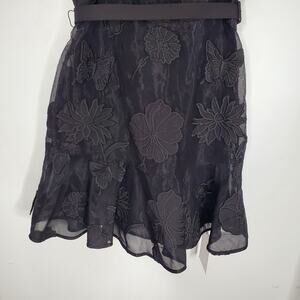 Milly Hannah Organza Belted Floral Embroidered Mini Dress Black Sheer Size 6 NEW