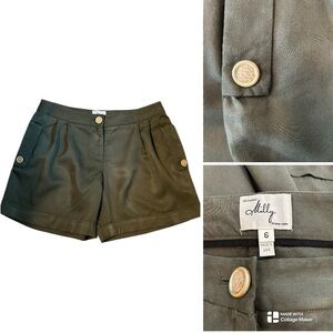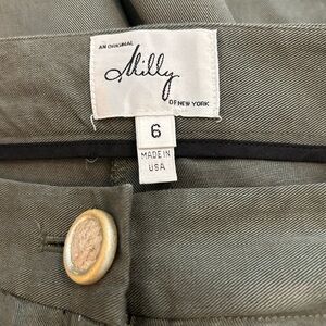 Excellent condition 6.5” inseam These high-waisted green shorts from Milly feature a tailored, structured look with pleated front details. Crafted for a comfortable fit, they offer a chic and versatile style perfect for any occasion.